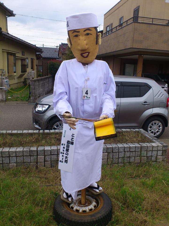 イベント参加報告 2016/09/27 【イベント参加報告】第33回 中田かかし祭(9/24) 9月24日(土)、「第33回 中田かかし祭」に、今年も足を運びました。会場の、中田中央公園に入ったところに、今年「24時間テレビ」のチャリティマラソンランナーを務めた林家たい平さんのかかしがありました。かかし祭お馴染み、木曾義仲にちなんだ作品。高岡出身の金メダリスト・登坂絵莉選手、射水出身の金メダリスト・田知本遥選手、閉会式での「安倍マリオ」など、リオデジャネイロオリンピックにちなんだ作品。熊本県の復興を祈る作品。NHK朝ドラ「とと姉ちゃん」の、「森田屋の大将」。新旧東京都知事。「この姿、昔はデート、今介護」「ポケモンGO」にちなんだ作品。今年も、ユニークな作品がたくさん揃っておりました。見ていて楽しかったです。 http://kirittotakaoka.ria10.com/houkoku/201609271600【イベント参加報告】第33回 中田かかし祭(9/24)