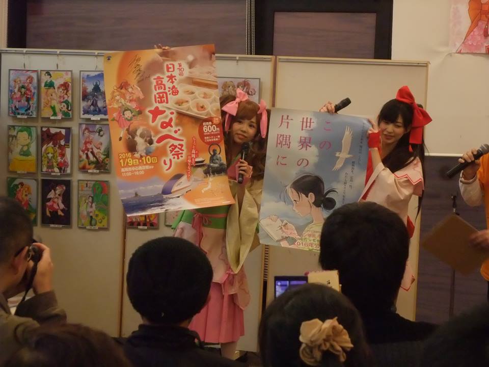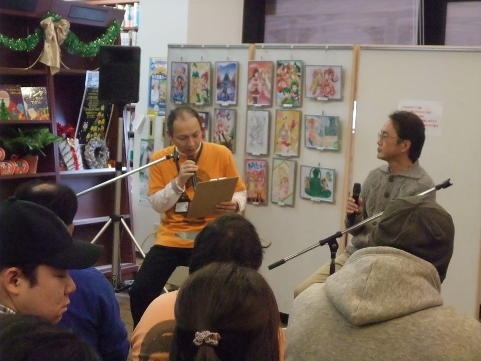 イベント参加報告 2015/12/15 【イベント参加報告】あみたん娘イラストコンテスト表彰式(12/6) この秋、高岡市観光大使あみたん娘のイラストコンテストが開催されましたがその表彰式が、12月6日(日)文苑堂書店福田本店にて開催されました。(イラストコンテスト受賞作品と、アニメーターの松原秀典さんと、あみたん娘公式コスプレイヤー)イベントには特別ゲストとして、高岡市出身のアニメーターで「あみたん娘」のキャラクターデザインを担当した松原秀典さんが出演。松原さんは表彰式のプレゼンターを務めた他、トークショー・サイン会も開催されました。(松原秀典さんによるトークショーの様子)(松原秀典さんによるサイン会の様子)また、あみたん娘の公式コスプレイヤー(カノン役:空野青空さん、セシル役:梶礼美菜さん)によるミニライブやサイン会開催されました。(あみたん娘公式コスプレイヤーによるステージでの一面)(あみたん娘公式コスプレイヤーによるサイン会)あみたん娘としては初の試みだったと思いますが、会場はとても大盛り上がりでした。また、松原さんの高岡への想い、アニメへの想い、あみたん娘への想いも聞くことができて良かったです。イラストコンテストの受賞作もとても素敵な作品ばかりで感動しました。受賞された皆様、おめでとうございます!あみたん娘イラストコンテスト 受賞者の皆様~グランプリ~四方朝日 様~松原秀典賞~cogi 様~TR@P賞~えぽにゃん 様~シー・エー・ピー賞~如月F 様ねこあいす 様ぽよよんチヒロ 様しょーこ 様おはぎ 様~優秀賞~ひよまる 様ふうたろー 様羽街由歌 様海老美紀子 様谷井里亜菜 様上原沙弥夏 様うどん 様mimiko 様中川裕己 様ホワイトチョコ 様 http://kirittotakaoka.ria10.com/houkoku/201512152000【イベント参加報告】あみたん娘イラストコンテスト表彰式(12/6)