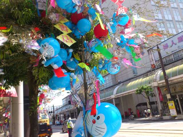 イベント参加報告 2014/06/20 御印祭前夜祭、弥栄節踊りを見に行きました(6/19) 6月19日(木)。日中は、高岡市議会6月定例会を傍聴しておりました。昼の休憩時、外に出たらこんな風景を撮影することができました。万葉線志貴野中学校前電停にて、ドラえもんトラムとアイトラムが並ぶ風景。そして、市議会傍聴を終えた帰りに、古城公園でも1枚撮りました。市民体育館と動物園の間あたりから、朝陽橋を撮った風景。決して近くはないものの、市役所から徒歩で一時帰宅。更に、夕方徒歩で金屋町へ行ったのでした。前回お知らせしました通り、昨日金屋町で御印祭の前夜祭が開催されました。実は御印祭に足を運ぶのは初めてでした。19時前、横田橋方面から金屋町に入ったのですが・・・。横田橋から車や人でいっぱいでした。で、県道254号線から金屋町の石畳通りに入ると、こんな感じ(笑)金屋町名物の石畳、下水道工事により現在一部分でこんな状態になっています。しかもこれから更に工事が本格化するとのことで・・・。もちろん工事が終われば石畳が復活しますが、新幹線開業に間に合うのかね(笑)金屋町ポケットパークへ。高岡市観光大使あみたん娘のオリジナル映像が放映される場所。こちらのスクリーンに映し出されます。この時は、係の方による調整が行われておりました。同じく金屋町ポケットパークでは、あみたん娘のリーフレット並びに、オリジナル小説連載中の富山新聞と読売新聞の配布が行われておりました。金屋町ポケットパークの目の前には、映画『8月のクリスマス』(2005年)の舞台にもなった、この建物があります。金屋緑地公園へ。こちらには特設ステージがあり、その上に設置されたスクリーンでも、あみたん娘オリジナル映像が放映されました。19時20分すぎ、金屋緑地公園の特設ステージで、開会式が行われました。それに先がけて、スクリーンではあみたん娘オリジナル映像の放映開始。夏至近いので、この時間でもまだ明るく・・・。もっと暗くなって欲しいなと思っておりました。その後、開会式では石井隆一富山県知事、髙橋正樹高岡市長が挨拶されましたが、知事、市長の後ろであみたん娘が踊るという見事な光景を見ることができました。金屋町の石畳通りは既にたくさんの人で移動が大変な状況に。それでなんとかポケットパークに戻りました。19時半頃、鋳物師の作業民謡唄「弥栄節(やがえふ)」に合わせた踊りが始まりました。弥栄節踊りの開始と共に、ポケットパークに設置されたスクリーンでもあみたん娘が踊り始めました。この見事なコラボレーションには、踊り手の皆様も注目されていました。金屋町の石畳通りには、弥栄節踊りの踊り手の皆様が延々と・・・。総勢何人なのかは分かりませんが、地元の団体の皆様、高校生や大学生の皆様など、本当にたくさんの方が伝統の弥栄節踊りに参加されていました。私も恥ずかしながらつい最近知ったのですが、弥栄節踊りには、「男踊り」と「女踊り」があります。(調べたら、他に「手踊り」というのもあるそうです)竹の棒を持って踊るのが「男踊り」、手ぬぐいを持って踊るのが「女踊り」です。こうやって弥栄節踊りを初めて生で見て・・・。とにかく「自分もこの中に加わりたかったな」という思いが(笑)それほど、心打たれてしまいました。金屋緑地公園の特設ステージに戻りますと、こちらでも弥栄節踊りが披露されていました。金屋緑地公園の噴水周辺も、「お祭り」な雰囲気でした。また、この日は知り合いに結構会ったので楽しかったです(笑)さて、色んな人から耳にしたのですが・・・「駐車場がなくて大変」。高岡鋳物発祥の地として400年の歴史があり、2012年に重要伝統的建造物群保存地区にも選ばれた金屋町ですが、とにかく駐車場が少ない(というよりも、ないに等しい)のが悩みの種です。同じく重要伝統的建造物群保存地区の山町筋は、高岡駅に近い方なので「公共交通機関を使え」はまだ通用しますが、高岡駅から徒歩20分の金屋町だとなかなかそうは言えません。バスという選択肢もありますが、そこまで充実しているとも言えず、何よりも車社会で車に慣れてしまっていることにより、車以外の選択肢をなかなか選ばなくなってきている気がします。私のように自宅から1.5kmくらいあるのに歩いて行く、みたいな人もなかなか珍しいですし、自転車は自転車でやはり停める場所がなさそうです。これにより、「本当は駄目だけど、やむを得ず周辺の店舗等の駐車場を利用した」という声も結構聞きました。また、買い物客による「駐車場がなくて買い物ができなかった」という声も聞いております。これは、なかなか大変な問題ですね・・・。金屋町へは、片原町からの万葉線延伸の話が出ていますが、実現可能かどうかもまだ分からないし、実現できたとしてもまだまだ先の話です。お祭りの開催環境という意味でも、観光地としての環境という意味でも、このままにはしていられない問