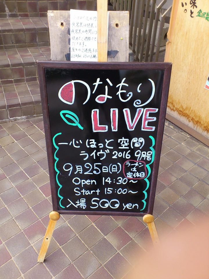 管理人のつぶやきその他 2016/09/30 【イベント参加報告】一心ほっと空間ライヴ2016 9月号(9/25) 9月25日(日)、「一心ほっと空間ライヴ2016 9月号」の開催でした。富山市の、ラーメン一心丸の内店での音楽ライヴイベントです。今回のゲストは、「のなもり」のお二人でした。また、「フレン子トースト」の特別販売がありました。前半は、主催のCHIHHIEさんによるステージ。さだまさしさんのカバー、新曲も含めたオリジナル曲、そして小矢部市のキャンペーンソング「小矢部で見つけましょう」などが披露されました。そして、のなもりのお二人によるステージ。ラッパー・Nonaさんと、シンガーソングライター・もりきゅあさんによるスペシャルユニット。音楽を超越したパフォーマンスに、ただただ感動でした。今月もドラえもんが登場。ドラえもんということで・・・。来月の「一心ほっと空間ライヴ2016 9月号」は、10月23日(日)の開催になります。ゲストは、藤子先生大好き芸人・富子山雄さんです。ぜひ、多くのご来場をお待ちしております。 PR http://kirittotakaoka.ria10.com/kanrinin/201609302200【イベント参加報告】一心ほっと空間ライヴ2016 9月号(9/25)