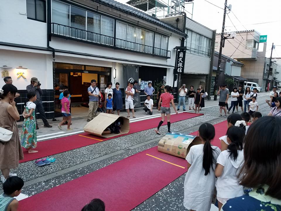 NPO法人 大佛三郎 2017/09/06 【イベント参加報告】大仏むすび縁日(8/27) 8月27日(日)夕方。高岡大仏前にて、「大仏むすび縁日」が開催されました。会場にはすれ違いが大変なくらい多くの人が集まり、みんなで夏の終わりの思い出を作りました。縁日では、今年も特定非営利活動法人大佛三郎の「大仏カステラ」ブースを出店。カステラ焼き体験ブースも含め、多くのお客様にご来店いただきました。そして、大仏前の道が歩行者天国に。まずは「ダンボールキャタピラー選手権大会」が開催されました。そして、メインイベントの「大仏盆踊り」。昨年復活した「大仏音頭」での輪踊り。今年は更に多くの方が集まり、踊りを楽しみました。歴史は浅いですが、市民に定着してきました。「夏の終わりの思い出作り」に、来年以降も多くの方に楽しんでいただけるイベントになればいいなと思います。 http://kirittotakaoka.ria10.com/saburou/201709061500【イベント参加報告】大仏むすび縁日(8/27)