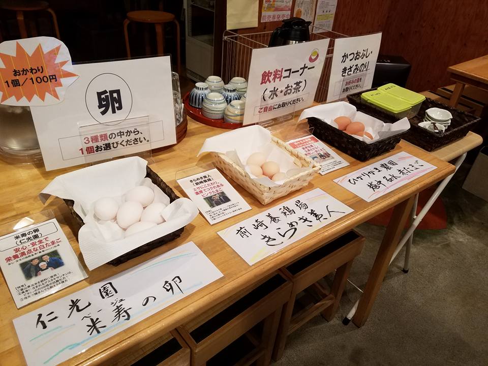 NPO法人 大佛三郎 2017/08/22 たかおか大仏茶屋 卵かけご飯朝食営業「だいぶつ朝食堂」が、8月27日(日)オープン!(8/27~) ★7月22日(土)・23日(日)プレオープンの様子★【イベント参加報告】だいぶつ朝食堂 プレオープン(7/22・23)たかおか大仏茶屋の朝食営業「だいぶつ朝食堂」が、8月27日(日)よりオープンいたします。提供させていただくのは、高岡の食材を使用したこだわりの卵かけご飯(500円)。卵は、高岡の3養鶏場さんの卵から、お好きなものを選んでいただく形です。・米寿の卵(仁光園さん)・・・白・きらめき美人(前崎養鶏さん)・・・ピンク・越中名水赤卵(ひかりがま農園さん)・・・赤お米は高岡産コシヒカリを使用。醤油と、味噌汁のお味噌は高岡の広瀬光治商店さんのものを使用しております。営業は、毎週金・土・日の、朝6時30分~9時00分(ラストオーダー8時30分)となっております。「一日のはじまりは、一杯の卵かけご飯から」高岡の食材にこだわった健康朝食を、ぜひお楽しみください(^^)/たかおか大仏茶屋の地図(Googleマップより) http://kirittotakaoka.ria10.com/saburou/201708221800たかおか大仏茶屋 卵かけご飯朝食営業「だいぶつ朝食堂」が、8月27日(日)オープン!(8/27~)