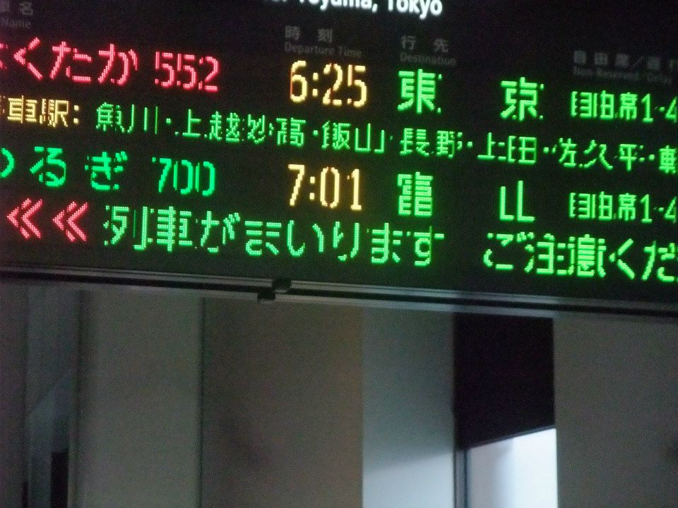 北陸新幹線 (2015年3月開業) 2015/03/17 2015年3月14日 北陸新幹線開業の朝、新高岡駅へ 皆様ご存知だと思いますが・・・。3月14日、ついに北陸新幹線が開業しました!!とにもかくにも、新しい時代が始まりました。この絶好のチャンスを活かすか殺すかは我々次第。新幹線開業前と変わらず、いやそれ以上にPRに努めていきたいなと思います。さて、前日13日に特急はくたか最終列車への乗車を果たし、それから帰宅して1時に就寝した私。14日は・・・5時半起床。そうです、もちろん、行ってきました。北陸新幹線開業の朝、新高岡駅へ。北口より撮影。西側から駅舎に入りました。南北自由通路。6年前、高岡開町400年の時に作られた前田利長公大兜。商工ビル前に設置されていたものが、こちらに移設されました。改札前。6時になるかならないかの時間帯でこれだけの人。新高岡駅の時刻表です。新高岡駅周辺の案内図。さて、入場券を購入し、改札の中へ。改札内では、新高岡駅の開業式の準備が進められておりました。開業式は、7時28分の臨時かがやき停車と同時に開催されたとのこと。富山・東京方面ホームへ。金沢方面を眺めます。富山・東京方面を眺めます。6時10分頃、「列車が通過します」の案内が。やってきたのは、かがやき500号東京行き。これが「かがやき」の一番列車です。ものすごい勢いで新高岡駅を通過していきました。そして、6時21分。反対側、金沢方面ホームに新幹線が・・・。つるぎ701号金沢行き。これが新高岡駅に停車する初の列車。ついに新高岡駅が開業いたしました。新高岡駅を去り、金沢駅へと向かうつるぎ701号。それから間もなく、こちら側富山・東京方面ホームにも列車がやってきます。はくたか552号東京行き。新高岡駅から東京へと向かう一番最初の列車。特急はくたか最終列車を見送ってから、7時間弱。「はくたか」が新幹線として帰ってきました。6時25分、はくたか552号が新高岡駅を出発しました。はくたか一番列車を見送ってから、周辺を散歩。南口の風景です。そして、北陸新幹線と同時に開業した、JR城端線の新高岡駅へ。城端線新高岡駅の、新幹線駅側入口。改札のない無人駅だとは予想外でした・・・(笑)西口より、城端線新高岡駅ホームを眺めました。西口広場。路面にこんなアートがありました。西口から駅舎を眺めました。こうして、北陸新幹線開業を迎えた新高岡駅をあとにし、家へと向かいました。とても肌寒く、路面も凍っているような朝でしたが、まさかあんな快晴になるとは思わなかったな・・・。とにかく、新幹線を見られて興奮の朝でした。「ついにやってきたんだな」という実感がじわじわと湧いてくるようでした。僅か1週間前に東京へ行ったため、新幹線に乗る予定は今のところ決まっていませんが・・・(笑)近々乗りたくなってきました!新高岡駅をどんどん利用していきたいですね。 PR http://kirittotakaoka.ria10.com/shinkansen/2015031720002015年3月14日 北陸新幹線開業の朝、新高岡駅へ