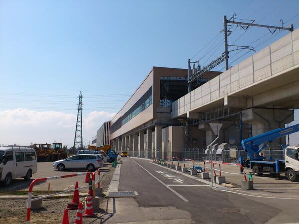 いよいよ3月末、ここから新ステーションビル「curun TAKAOKA」や人工デッキに行くことができる。