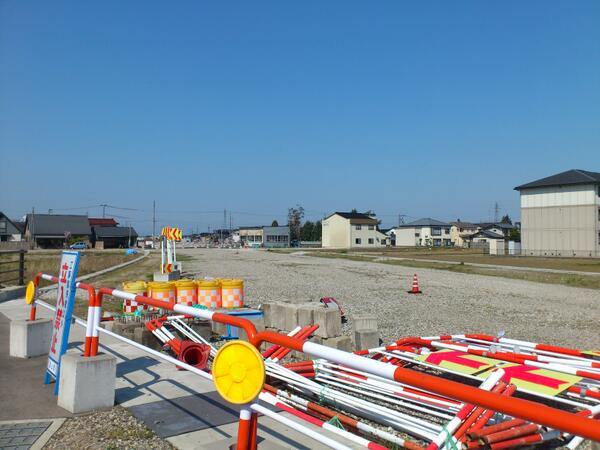 駅舎はほぼ完成。駅前広場で何か作っていた。