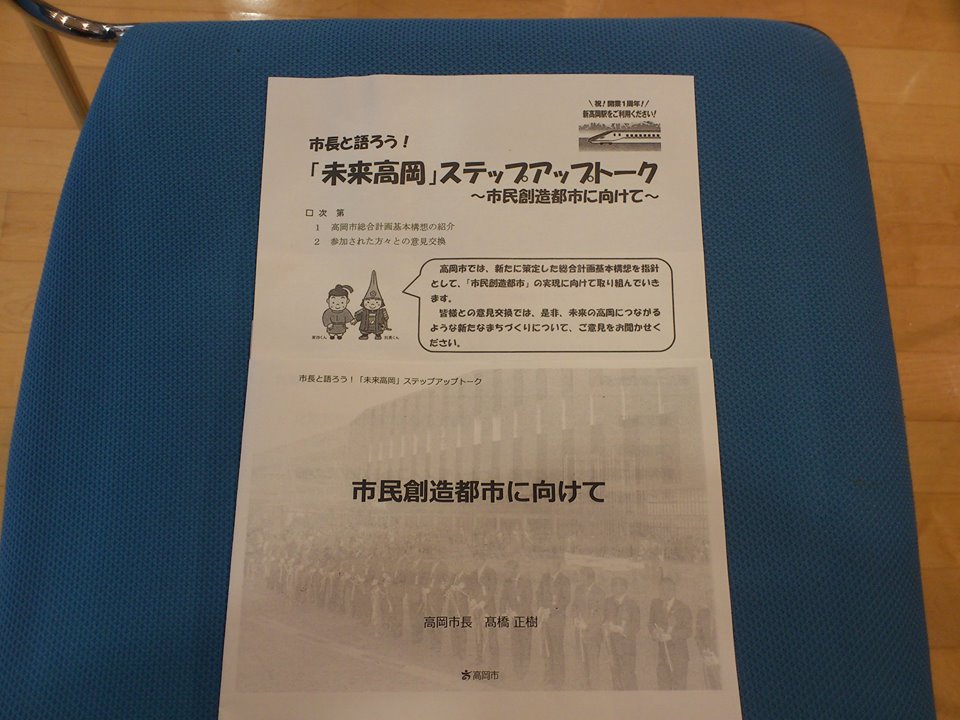 高岡市政情報 2016/09/29 【イベント参加報告】市長と語ろう!「未来高岡」ステップアップトーク~市民創造都市に向けて~ 博労地区(9/25) 9月25日(日)午前。市長と語ろう!「未来高岡」ステップアップトーク ~市民創造都市に向けて~の博労地区に参加。市長による総合計画の説明等がありました。「市民創造都市」・・・ということですが、言うまでもなく行政の努力だけでは成し遂げられません。私も一市民として、高岡のまちづくりに貢献できるように、これからも活動していきたいと思います。 PR http://kirittotakaoka.ria10.com/shisei/201609291800【イベント参加報告】市長と語ろう!「未来高岡」ステップアップトーク~市民創造都市に向けて~ 博労地区(9/25)