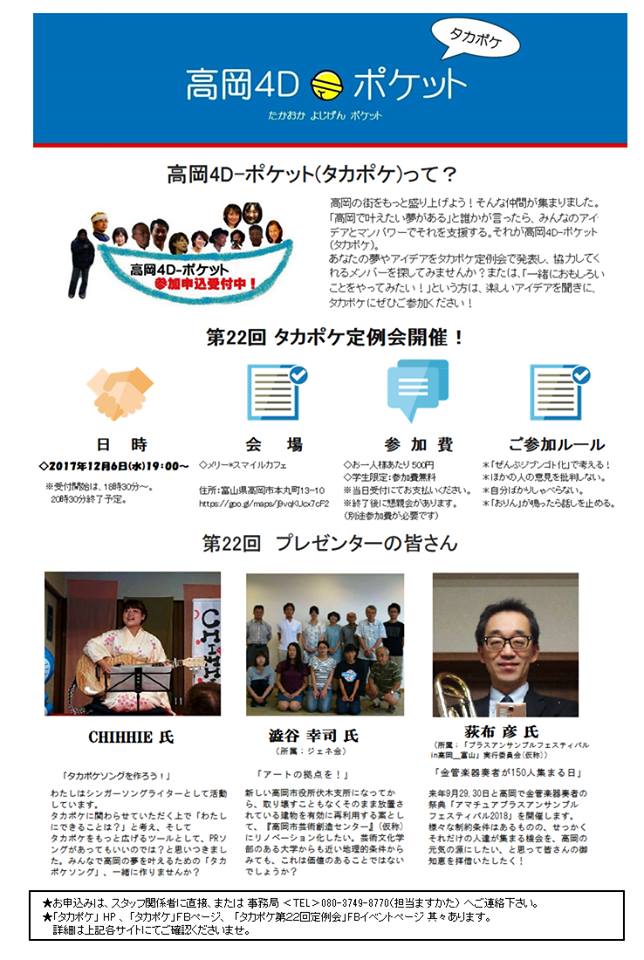 高岡を盛り上げたい!高岡で何かをしたい!という人を全力応援するプロジェクト、「高岡4D-ポケット(通称:タカポケ)」