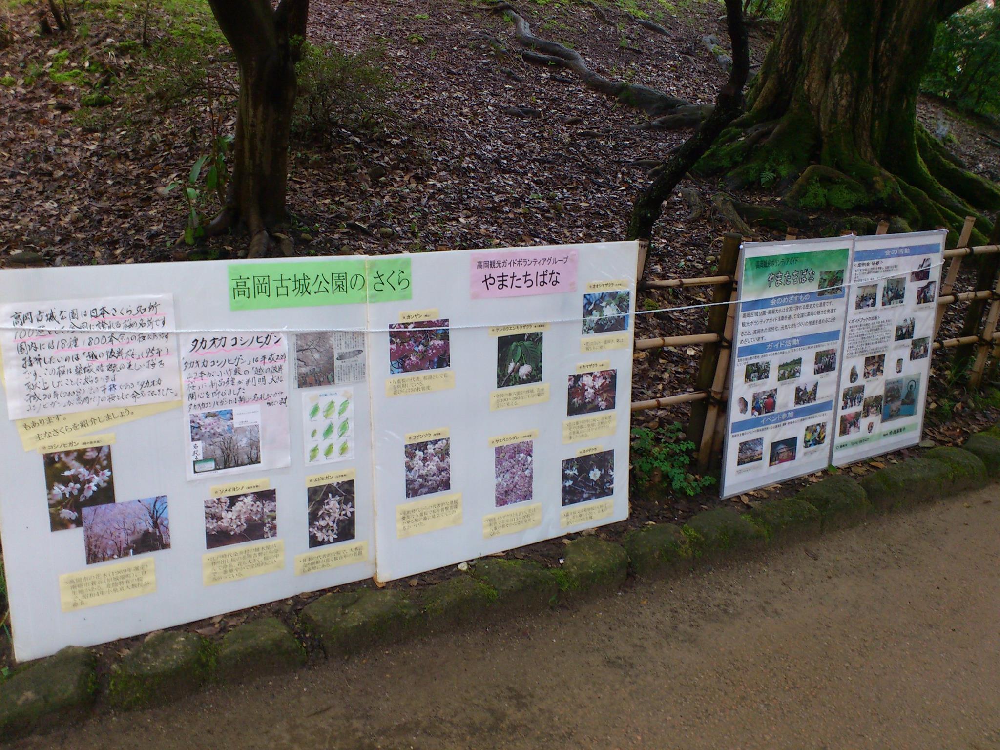 高岡観光ボランティアガイド「やまたちばな」 2017/04/10 【イベント参加報告】高岡桜まつり 古城公園見どころ説明(4/9) 4月9日(日)。高岡桜まつり開催中の高岡古城公園(国指定史跡・高岡城跡)にて、高岡観光ボランティアガイド「やまたちばな」による「古城公園見どころ説明」のブースを設置。10年以上続くこの活動に、初めてガイドとして参加させていただきました。古城公園に来園された観光客・花見客の皆様に、古城公園の見どころや桜についてガイド。また、午前には別に依頼ガイド(金沢から来られた40名様の団体客)があり、先輩ガイドに付き添う形で参加させていただきました。当日は生憎の雨でしたが、多くの観光客・花見客で賑わっておりました。古城公園の桜が、見ごろです! http://kirittotakaoka.ria10.com/yamatachibana/201704101600【イベント参加報告】高岡桜まつり 古城公園見どころ説明(4/9)